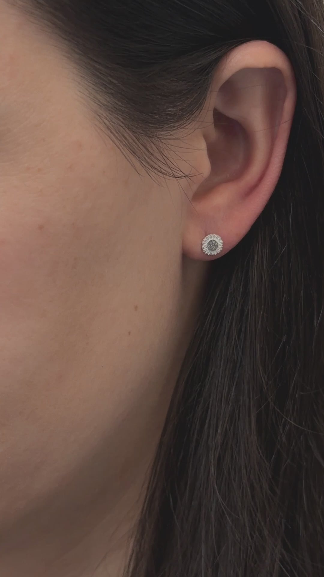 עגילי שמש כסף הם עגילים צמודים ועדינים בהשראת פרח חמניה. עיצוב עגול עם טקסטורה עדינה יוצר ברק רך שמאיר את הפנים ומתאים לכל יום, לבד או בשילוב עגילים נוספים.