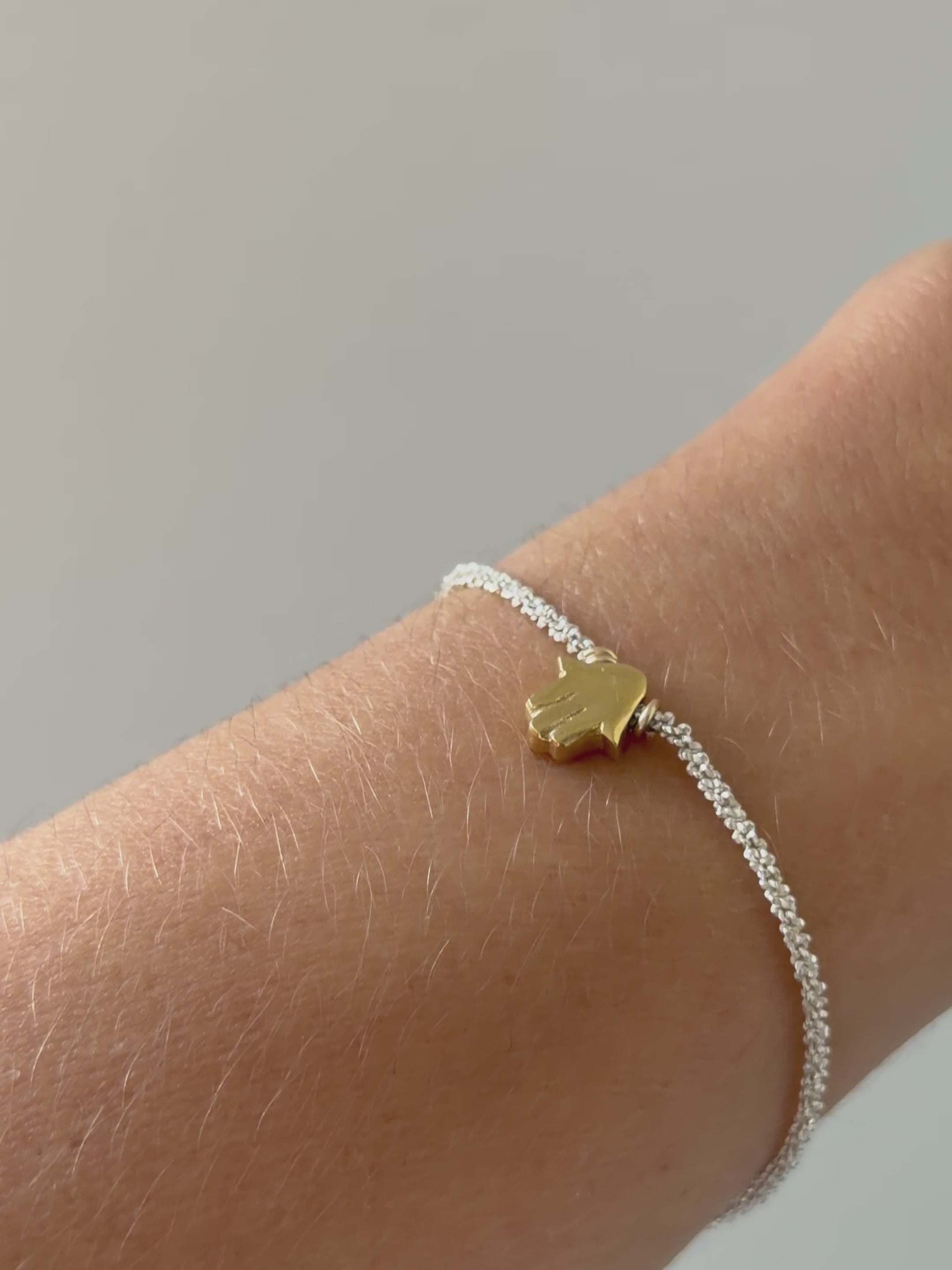 צמיד חמסה מיקס עשוי עבודת יד מלאה מכסף 925 וגולדפילד 14K, תליון הצמיד לאחר מכן מצופה בזהב 24 קראט.
