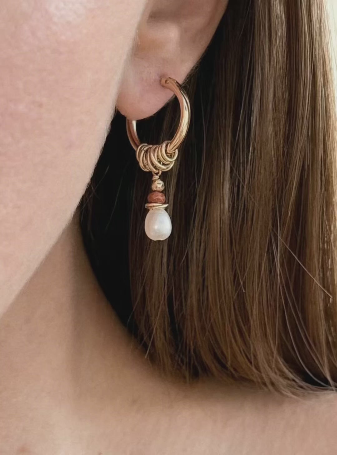 עגילי פטרה גולד עשויים עגילי חישוק מושלמים עם אלמנטים עגולים, אבנים ופנינים אמיתיות.