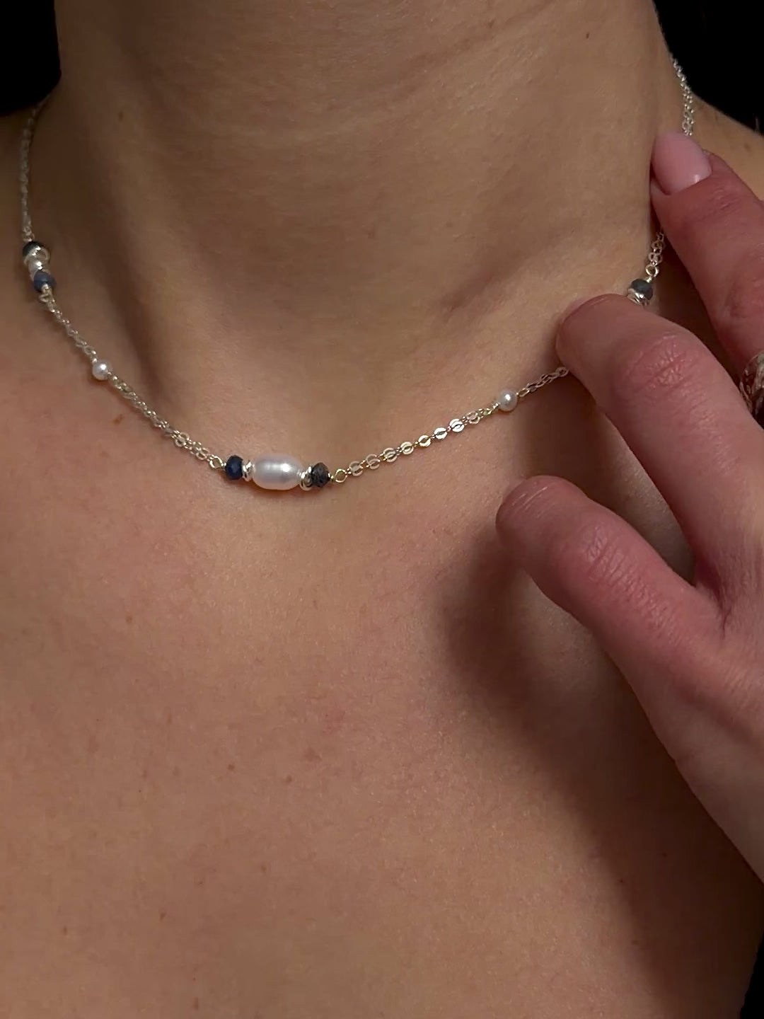 שרשרת נורה אושן כסף עשויה בעבודת יד מפנינים ואבני סלדייט אמיתיות
